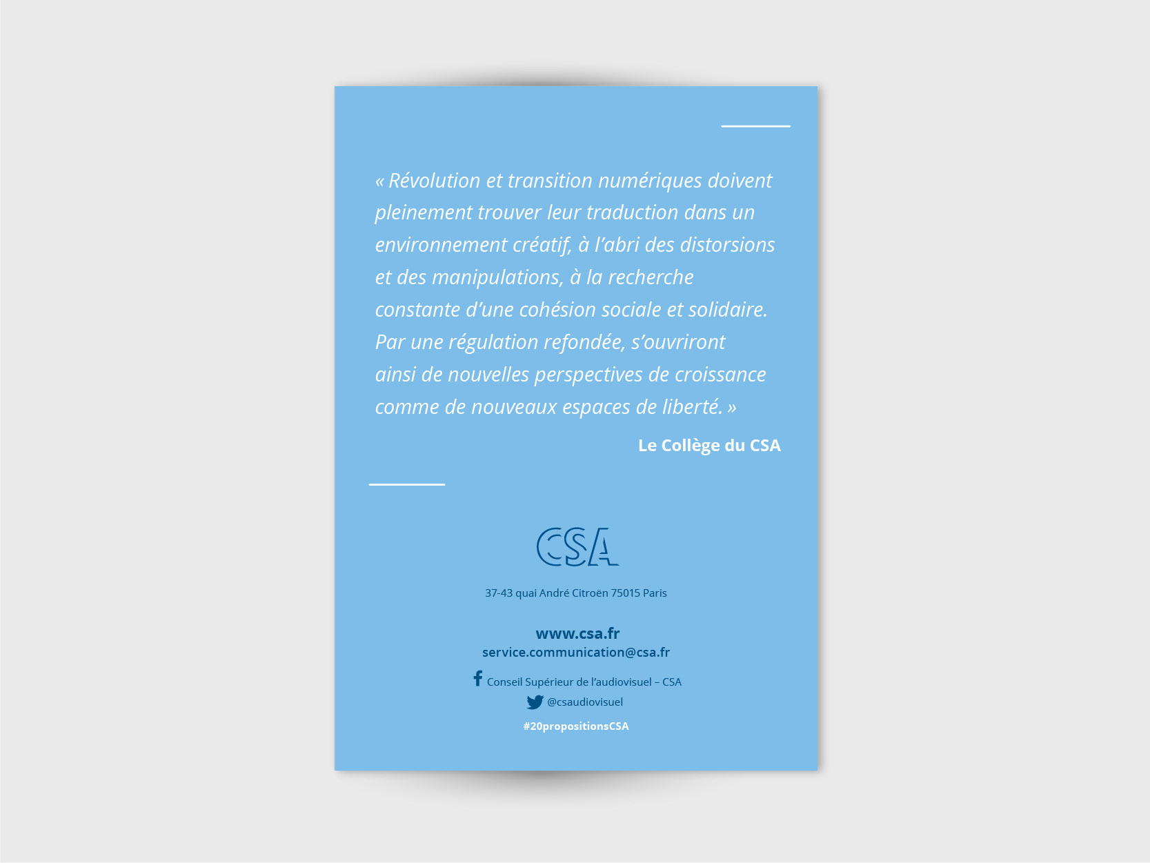 Conception de la brochure "Refonder la régulation audiovisuelle : les 20 propositions du CSA"